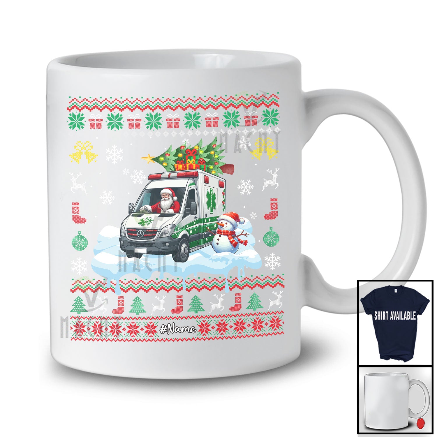 Personalized Santa Christmas Tree On Ambulance; Joyful Sweater Snowman; Custom Name Driver T-Shirt