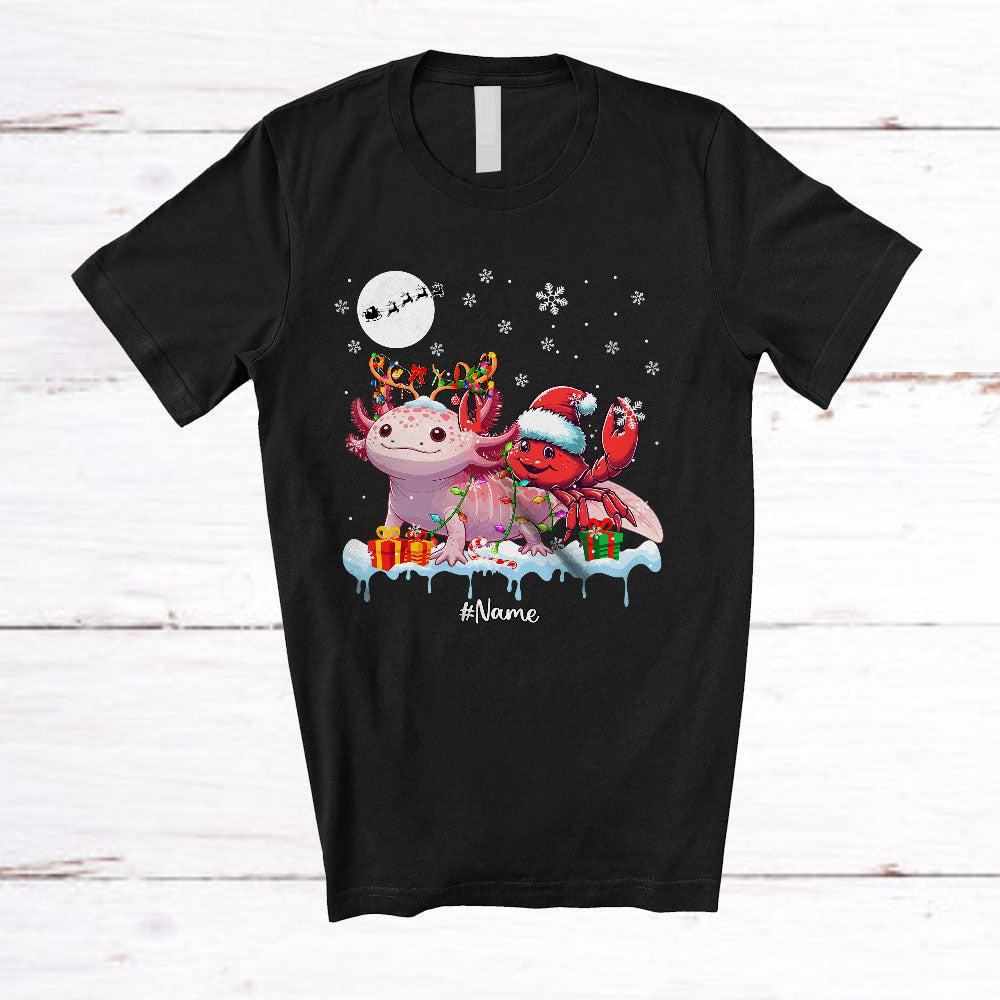Personalized Santa Crab Riding Reindeer Axolotl; Awesome Christmas Custom Name Sea Animal T-Shirt