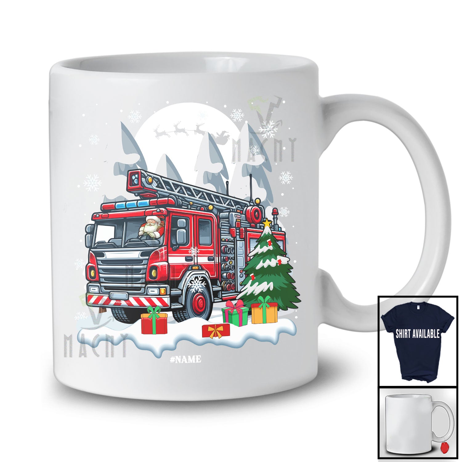 Personalized Santa Driving Firefighter Truck ; Merry Christmas Custom Name Firefighter Truck Driver T-Shirt. This cotton t-shirt is a durable staple product with a classic fit. One of the most popular items, it has a relaxed style made for everyday and casual wear.