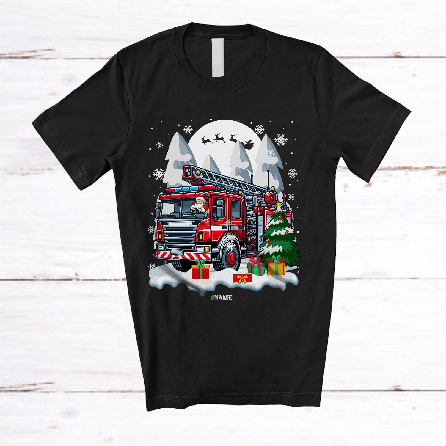 Personalized Santa Driving Firefighter Truck ; Merry Christmas Custom Name Firefighter Truck Driver T-Shirt