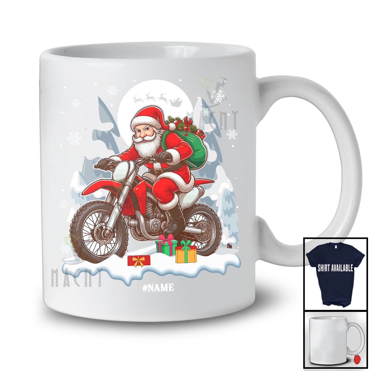 Every product is unique, just like you. If you're looking for a product that fits the mold of your life, the Personalized Santa Riding Dirt Bike; Merry Christmas Custom Name Dirt Bike Biker; Family T-Shirt is for you.