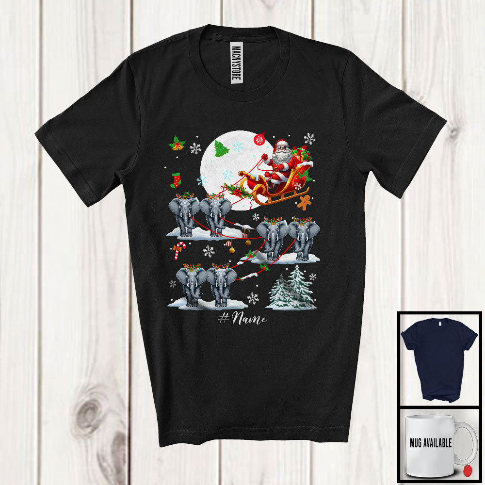 Personalized Santa Riding Reindeer Elephant Sleigh; Awesome Christmas Moon; Animal Family T-Shirt