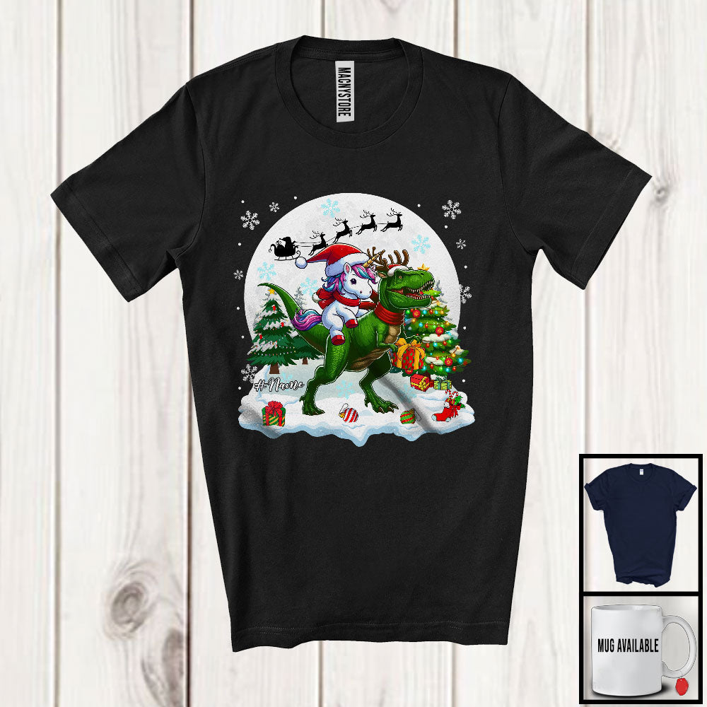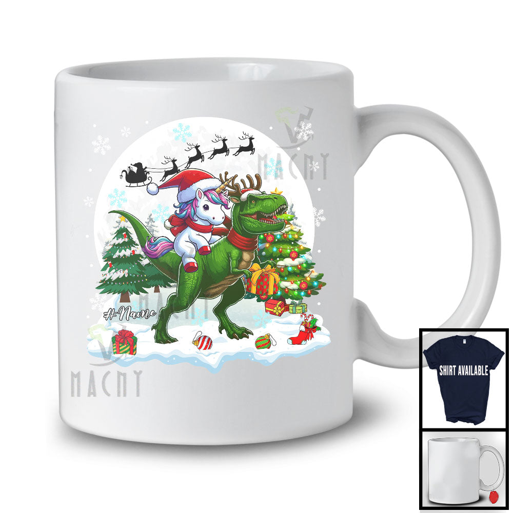 Personalized Santa Unicorn Riding T-Rex Reindeer; Awesome Christmas Custom Name T-Rex T-Shirt