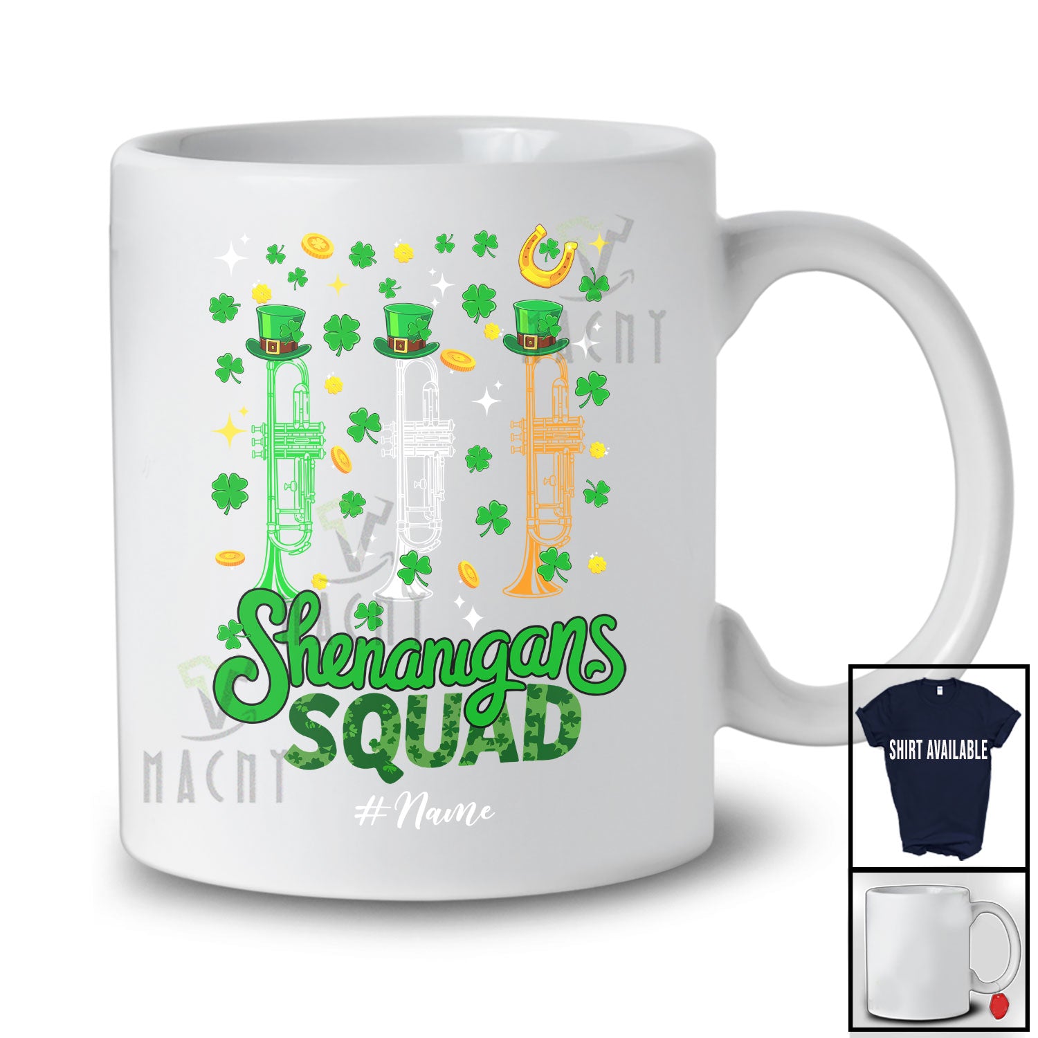 This Personalized Shenanigans Squad; Happy St. Patrick's Day Three Trumpets Custom Name Player T-Shirt is great idea gift for your family, friends in this birthday, christmas, mother's day, father's day, patrick's day or any holiday.