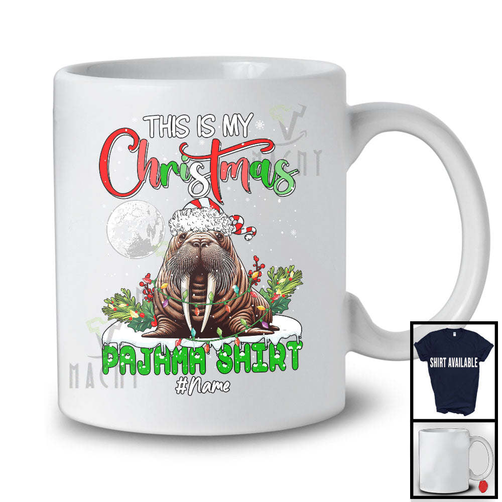 Personalized This Is My Christmas Pajama Shirt; Merry X-mas Elf Walrus; Custom Name Sea Animal T-Shirt