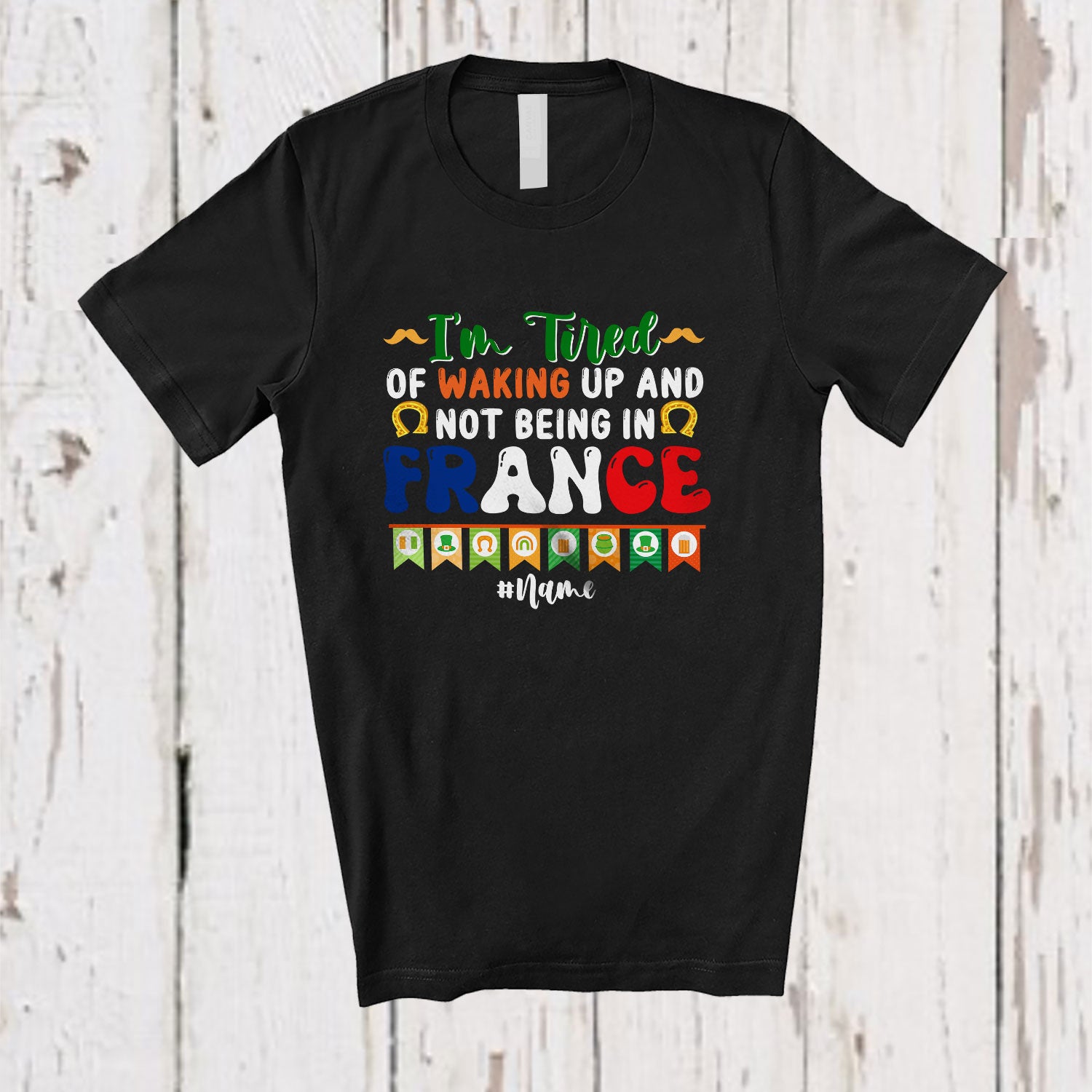Personalized Tired Of Not Being In France; Humorous St. Patrick's Day Groovy Custom Name French T-Shirt