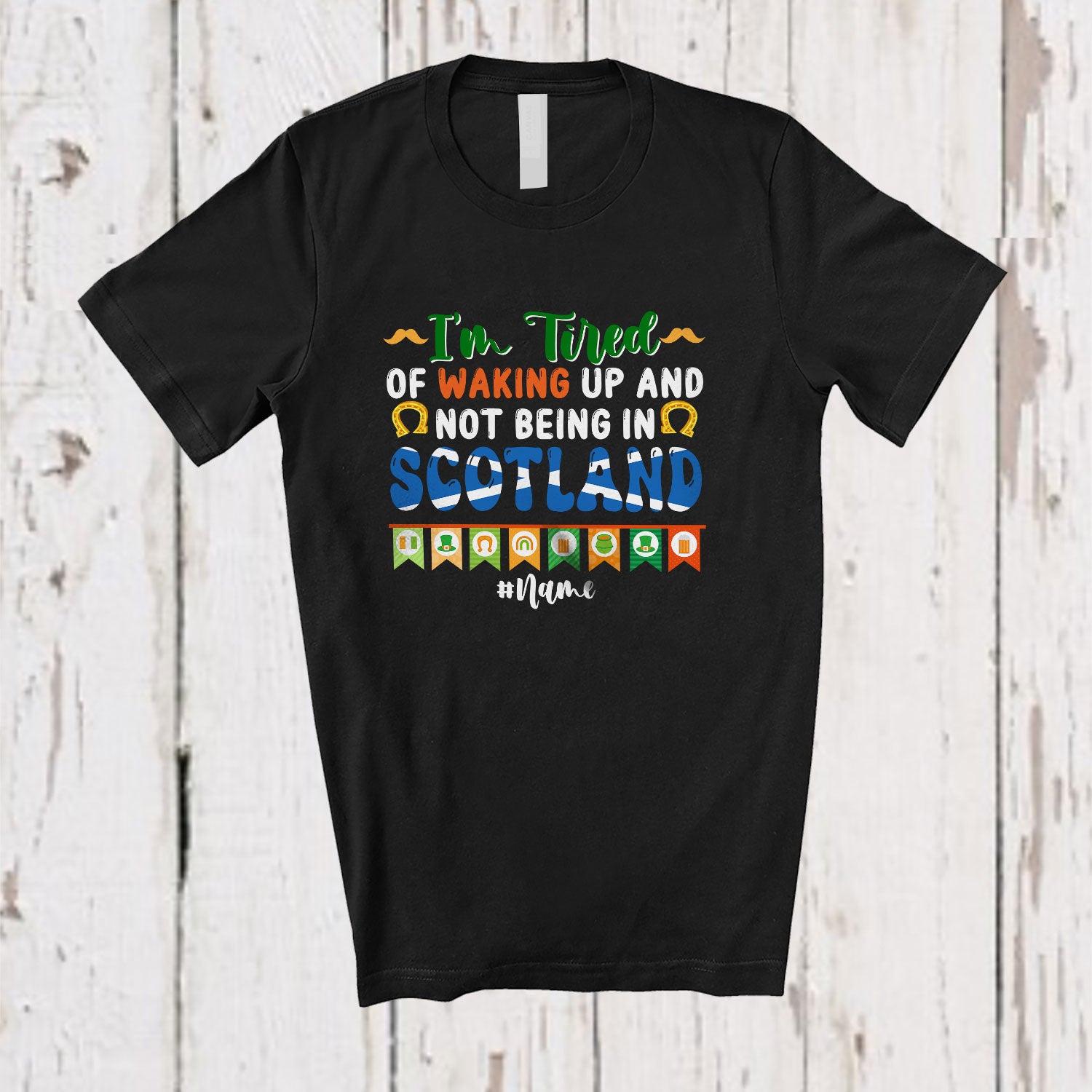 Personalized Tired Of Not Being In Scotland; Humorous St. Patrick's Day Groovy Custom Name Scottish T-Shirt
