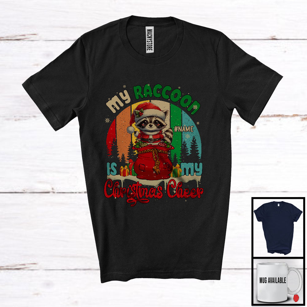 Personalized Vintage Retro Raccoon Is My Christmas Cheer; Lovely Santa Custom Name T-Shirt