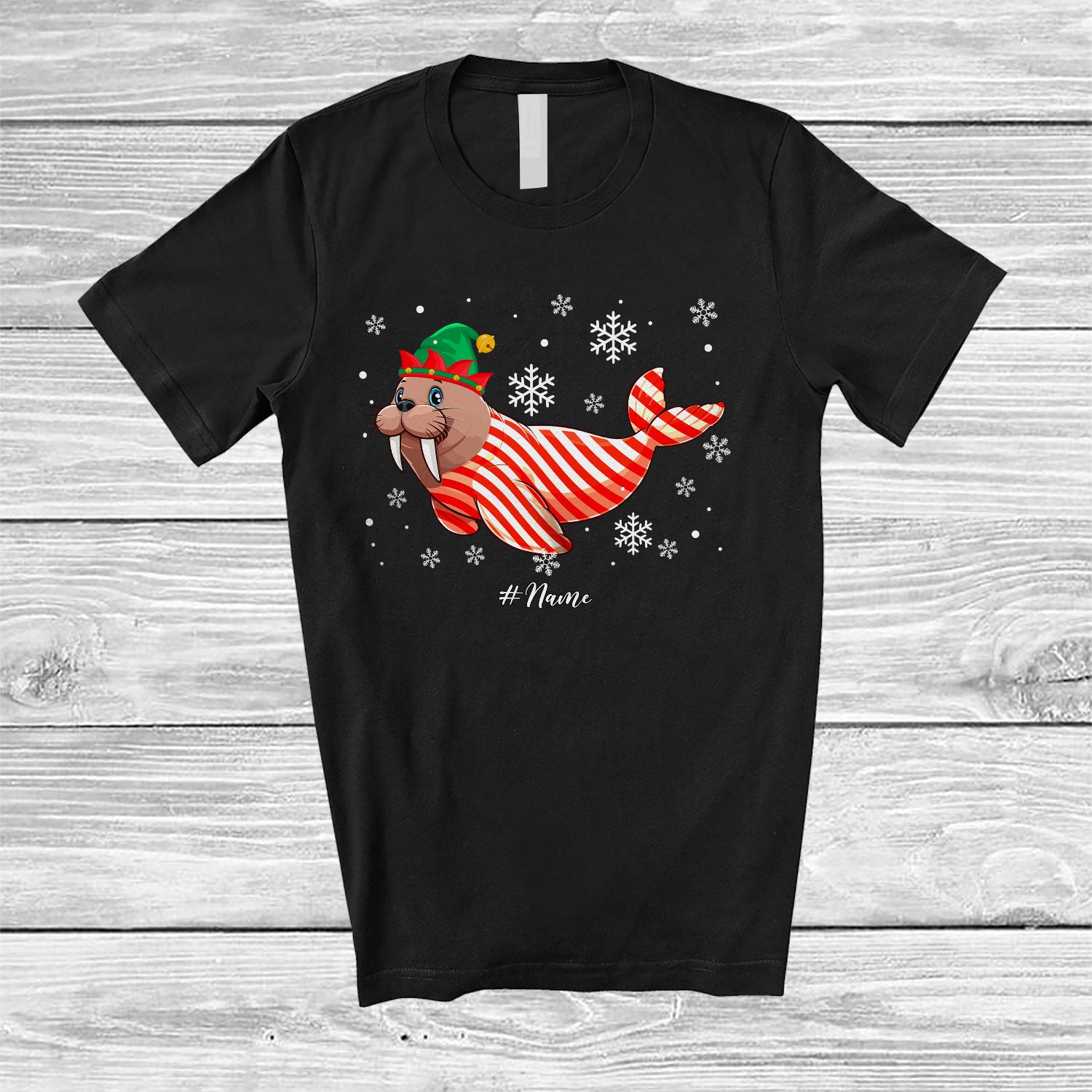 Personalized Walrus Candy Canes Cosplay; Lovely Christmas Custom Name Elf Walrus; Sea Animal T-Shirt