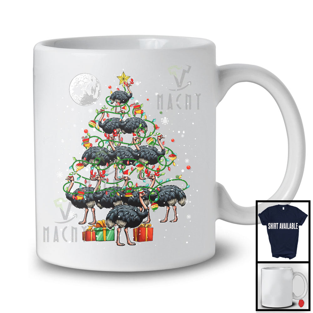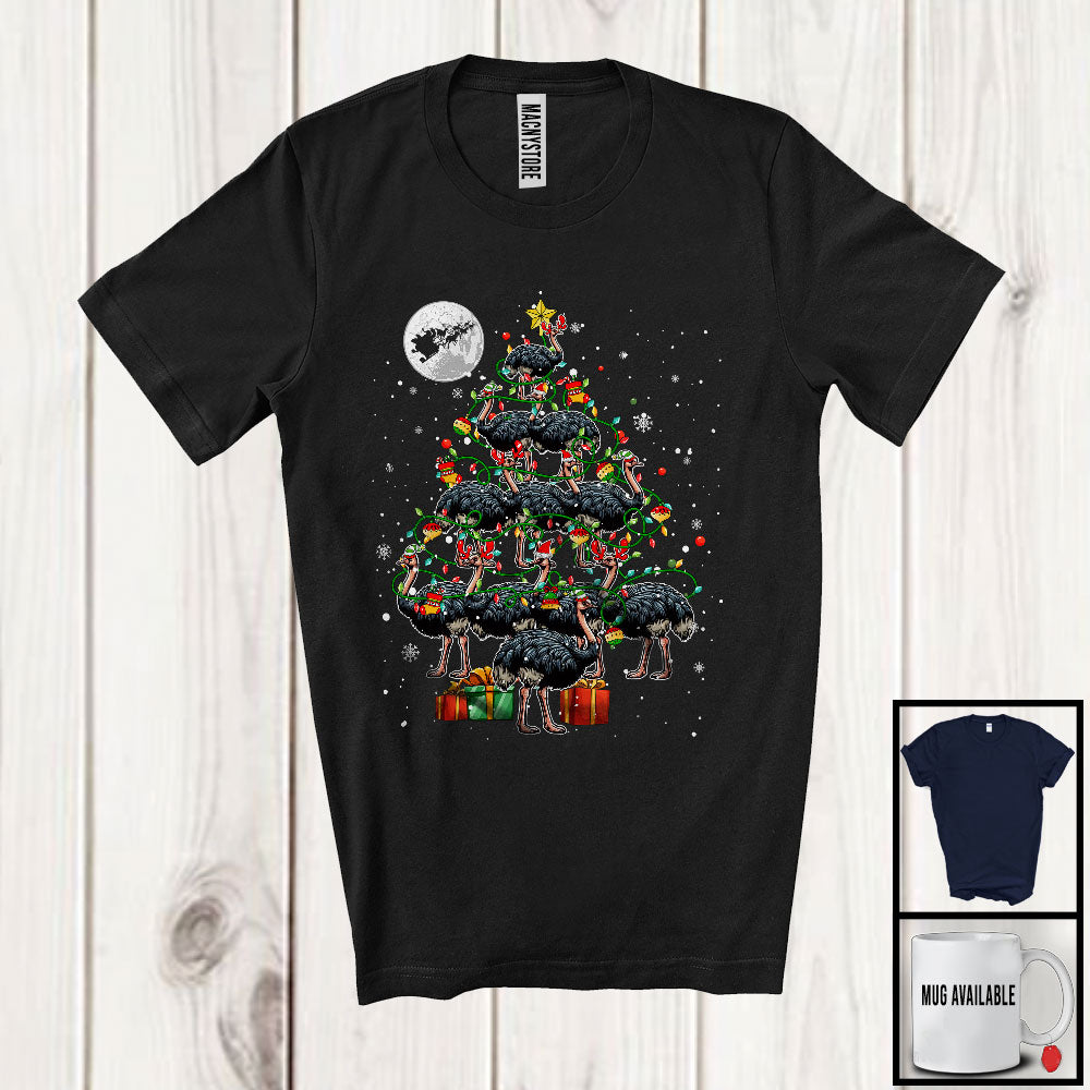 Reindeer Elf Santa Ostrich Christmas Tree; Humorous X-mas Lights Ostrich Animal; Family Group T-Shirt