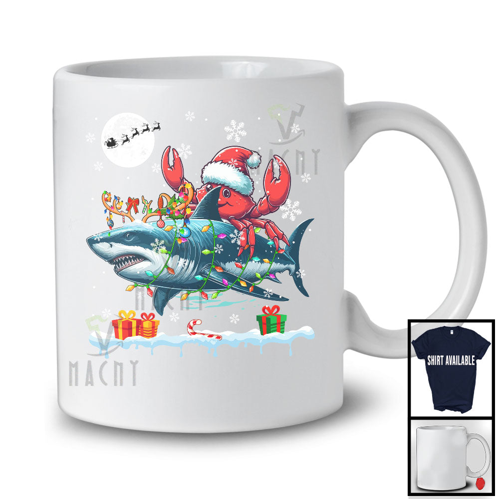 Santa Crab Riding Reindeer Shark; Amusing Christmas Lights Sea Animal Lover; Family T-Shirt