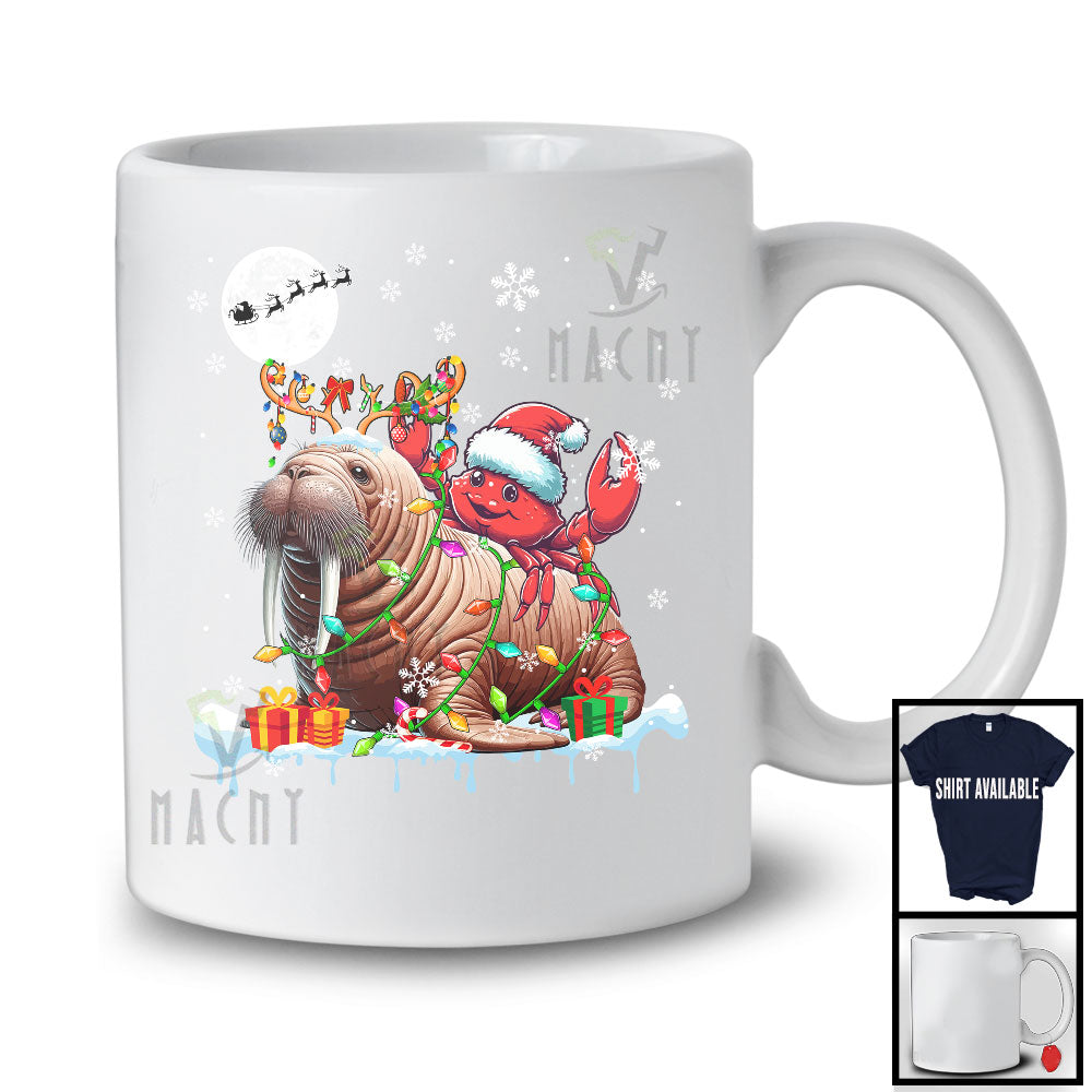 Santa Crab Riding Reindeer Walrus; Amusing Christmas Lights Sea Animal Lover; Family T-Shirt