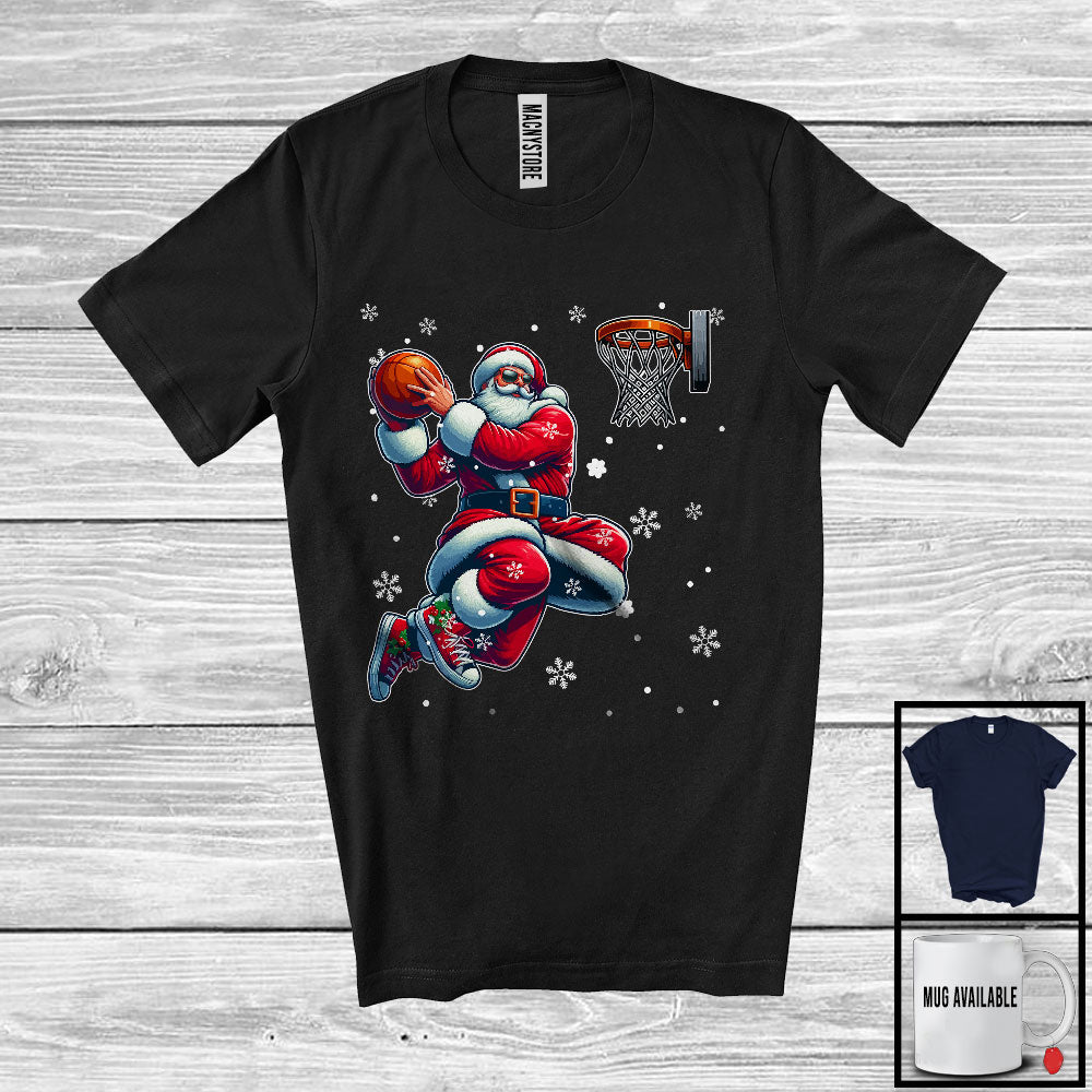 new MacnyStore - Santa Playing Basketball, Humorous Christmas Santa Sport Player Team, Family X-mas Group T-Shirt – Macnystore