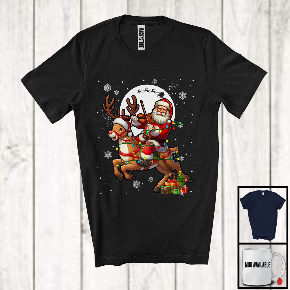 Santa Playing Violin Riding Reindeer; Awesome Christmas Lights Violin Player; Musical Instruments T-Shirt