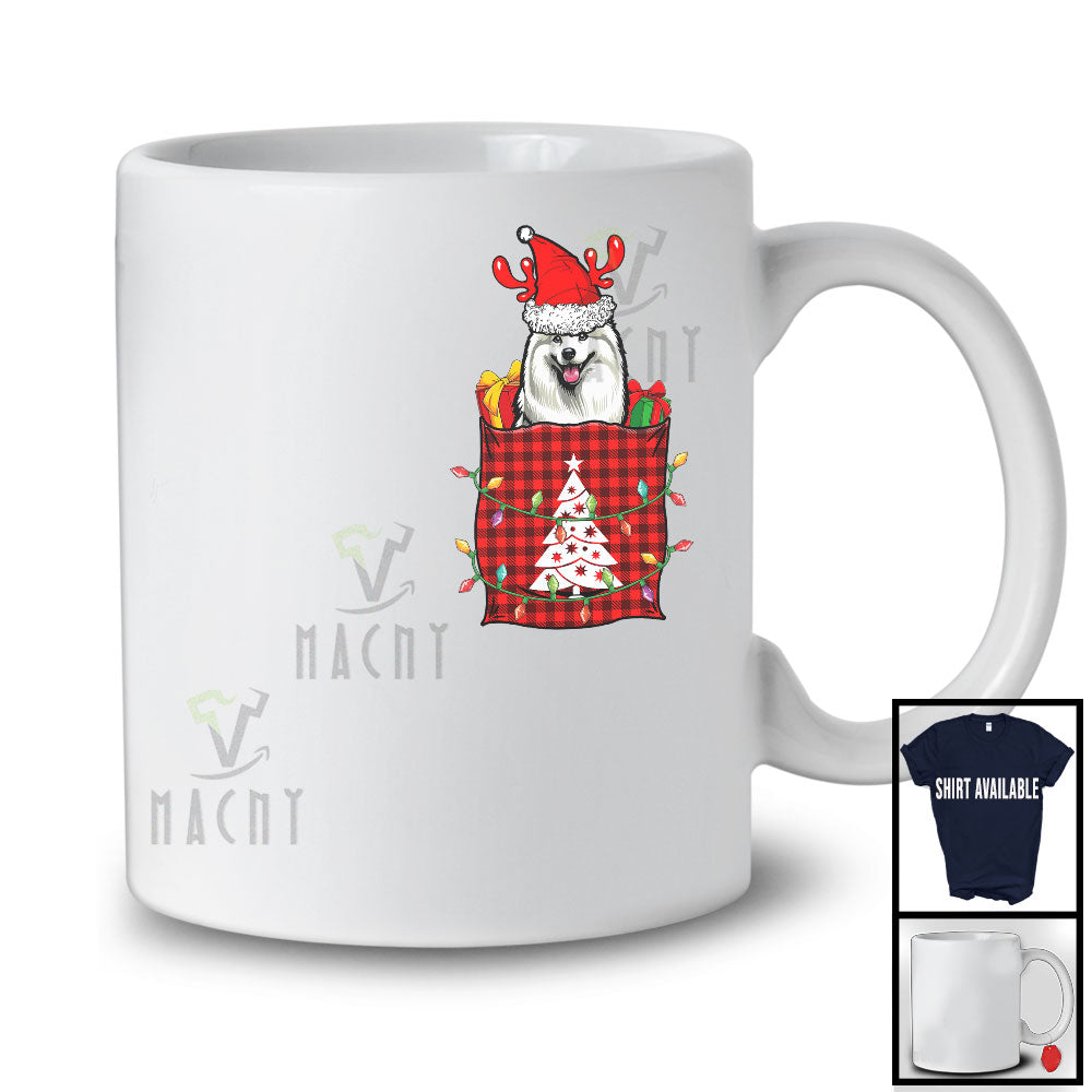 This Santa Reindeer American Eskimo In Pocket Funny Christmas Lights Dog Lover T-Shirt is great idea gift for your family, friends in this birthday, christmas, mother's day, father's day, patrick's day or any holiday.