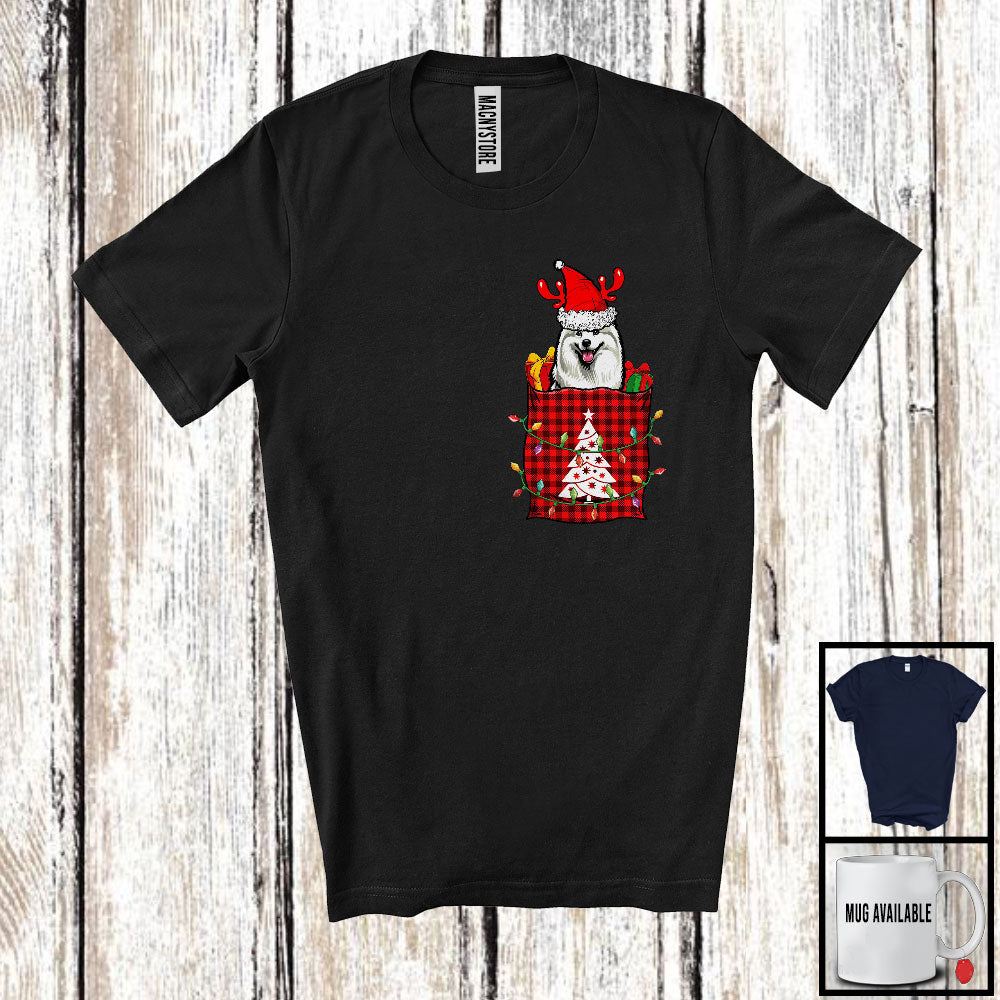 Santa Reindeer American Eskimo In Pocket Funny Christmas Lights Dog Lover T-Shirt