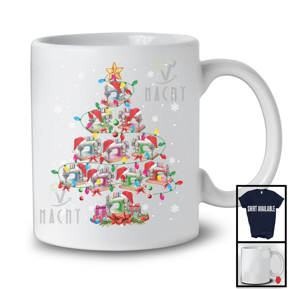 Santa Sewing Machine Christmas Tree; Awesome X-mas Lights Sewing; Pajama Family Group T-Shirt