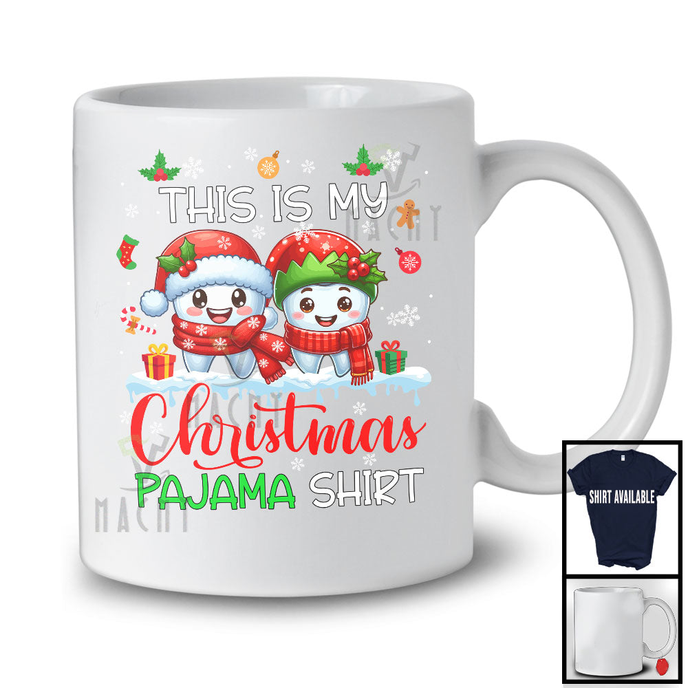 • This Is My Christmas Pajama Shirt; Adorable Santa Couple Teeth Tooth; Dental Assistant Dentist T-Shirt. This cotton t-shirt is a durable staple product with a classic fit. One of the most popular items, it has a relaxed style made for everyday and casual wear.