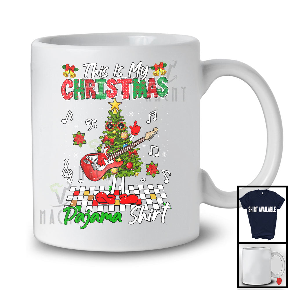 This Is My Christmas Pajama Shirt; Amazing X-mas Tree Playing Rock Guitar; Guitarist Retro T-Shirt. This cotton t-shirt is a durable staple product with a classic fit. One of the most popular items, it has a relaxed style made for everyday and casual wear.
