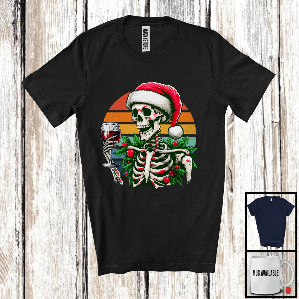 Vintage Retro Santa Skeleton With Wine Glass; Sarcastic Christmas X-mas Drinking Drunker T-Shirt