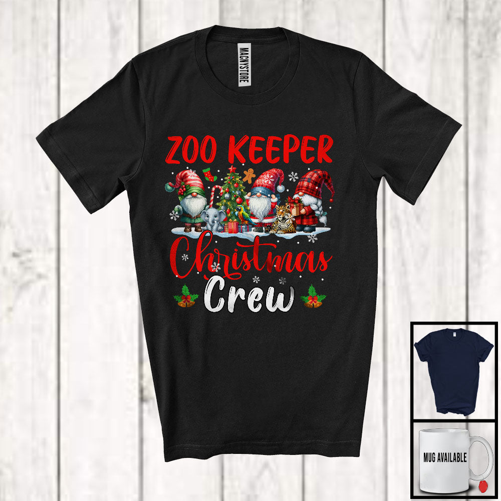 Zoo Keeper Christmas Crew; Adorable X-mas Tree Three Gnomes; Snowing Zoo Keeper Group T-Shirt