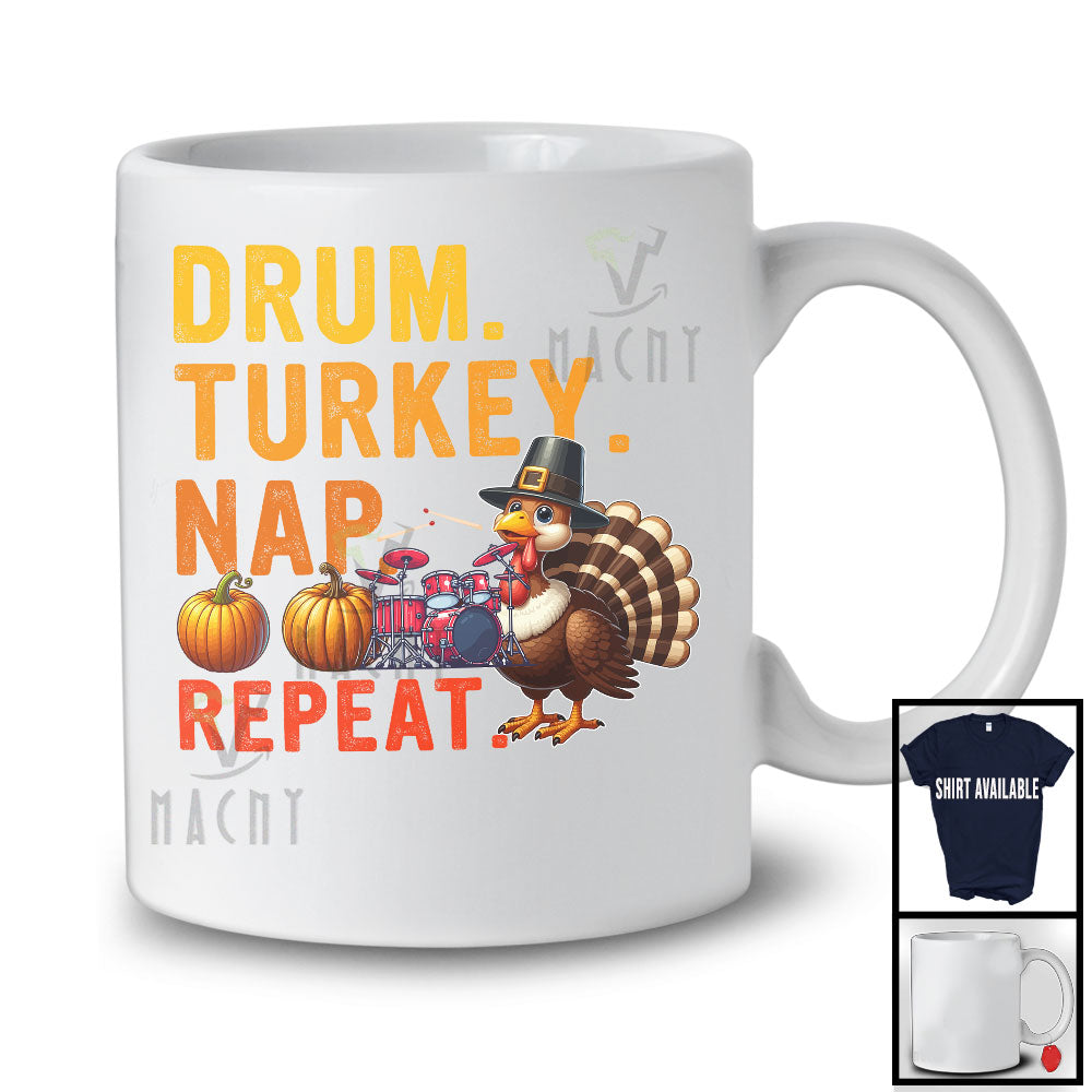 Drum Turkey Nap Repeat, Humorous Thanksgiving Turkey Drum Player, Musical Instruments T-Shirt