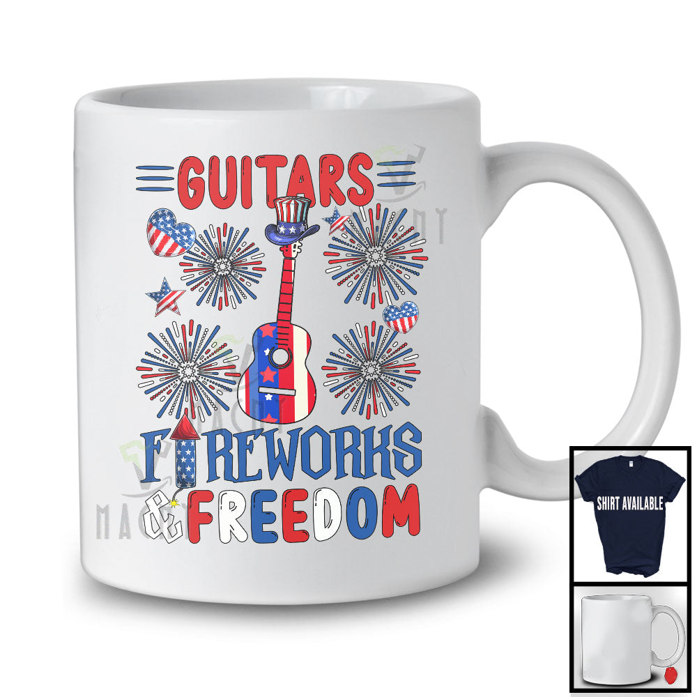 Guitars Fireworks And Freedom, Proud 4th Of July American Flag Musical Instruments, Patriotic T-Shirt