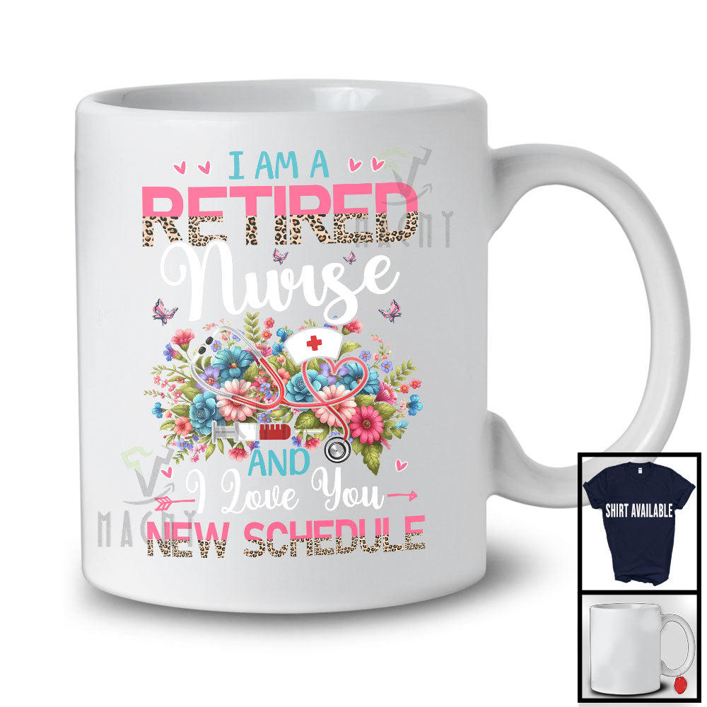 I Am A Retired Nurse New Schedule, Floral Leopard Flowers Nurse, Retirement Group T-Shirt