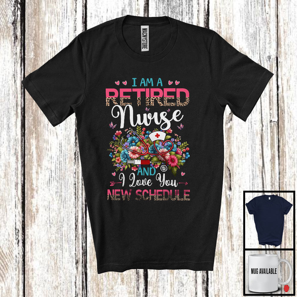 new MacnyStore - I Am A Retired Nurse New Schedule, Floral Leopard Flowers Nurse, Retirement Group T-Shirt – Macnystore