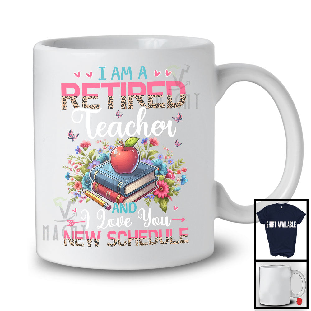 I Am A Retired Teacher New Schedule, Floral Leopard Flowers Teacher, Retirement Group T-Shirt