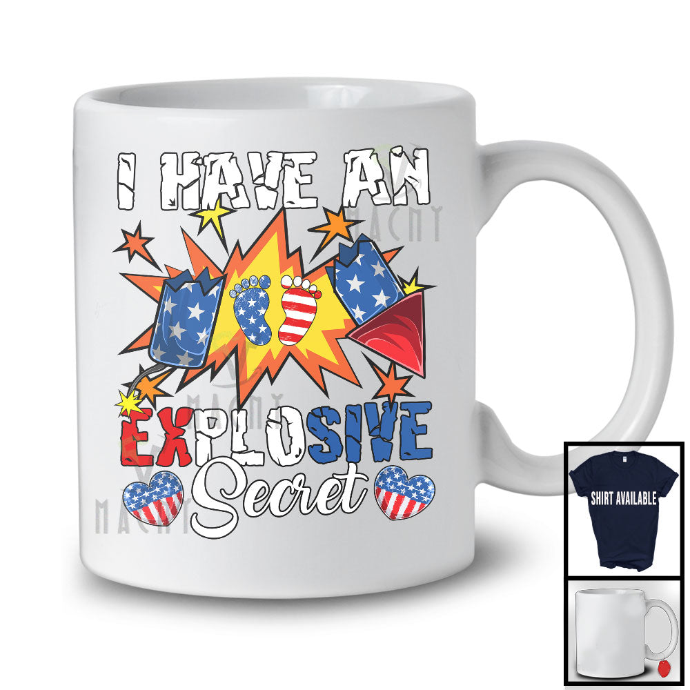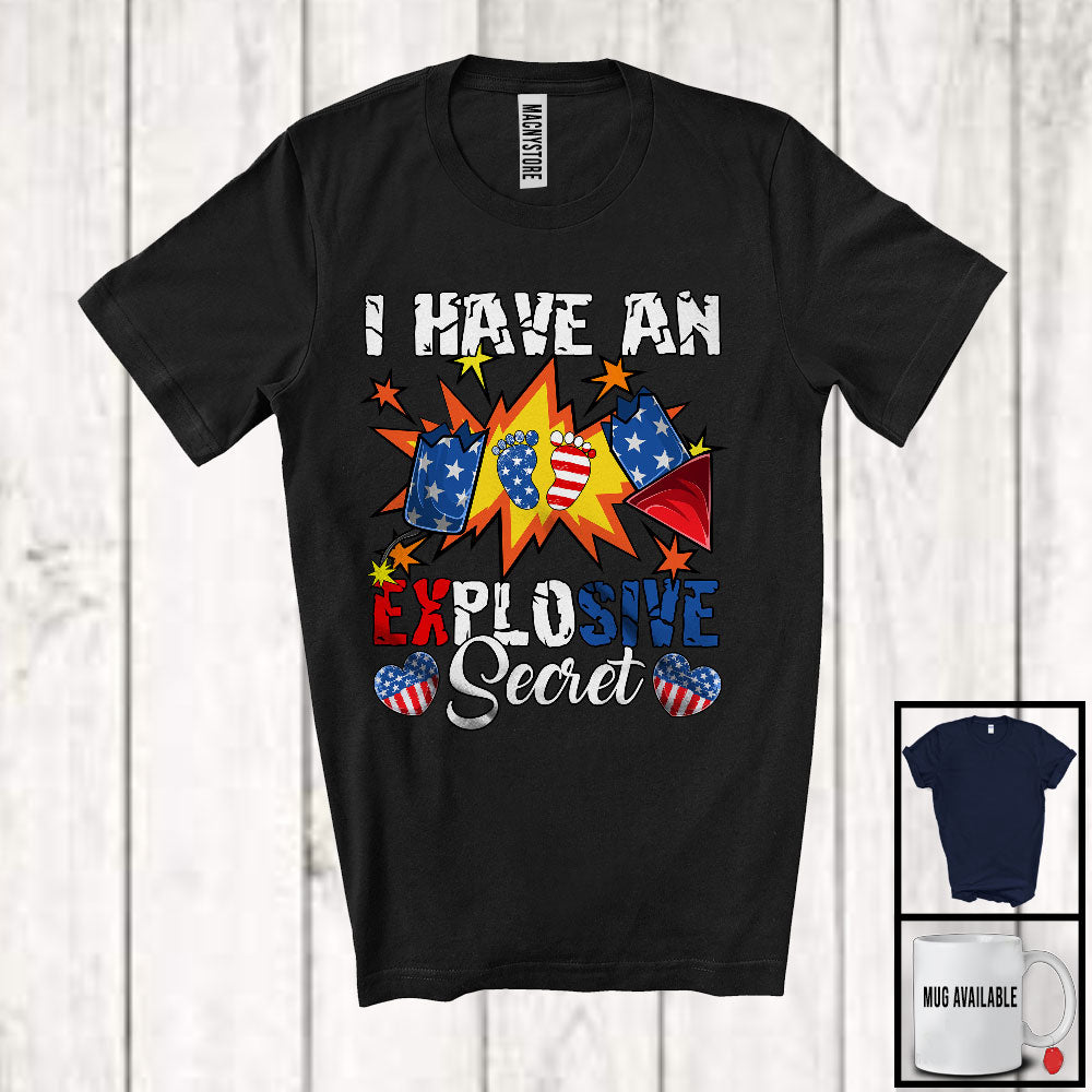 • I Have An Explosive Secret, Amazing 4th Of July Firework Firecracker, Pregnancy Announcement T-Shirt. This cotton t-shirt is a durable staple product with a classic fit. One of the most popular items, it has a relaxed style made for everyday and casual wear.