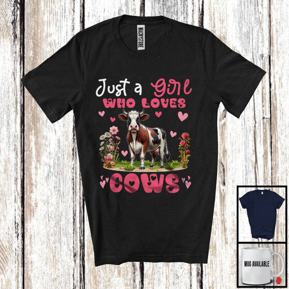 Just A Girl Who Loves Cows, Floral Farm Animals Farmer, Matching Women Flowers Family Group T-Shirt