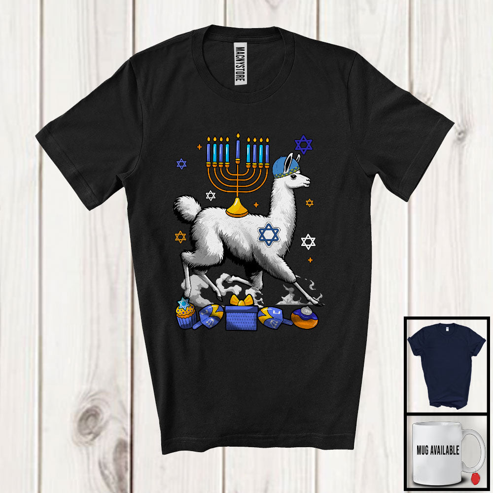 Menorah On Llama; Humorous Hanukkah Llama Animal Lover; Matching Family Group T-Shirt. This cotton t-shirt is a durable staple product with a classic fit. One of the most popular items, it has a relaxed style made for everyday and casual wear.
