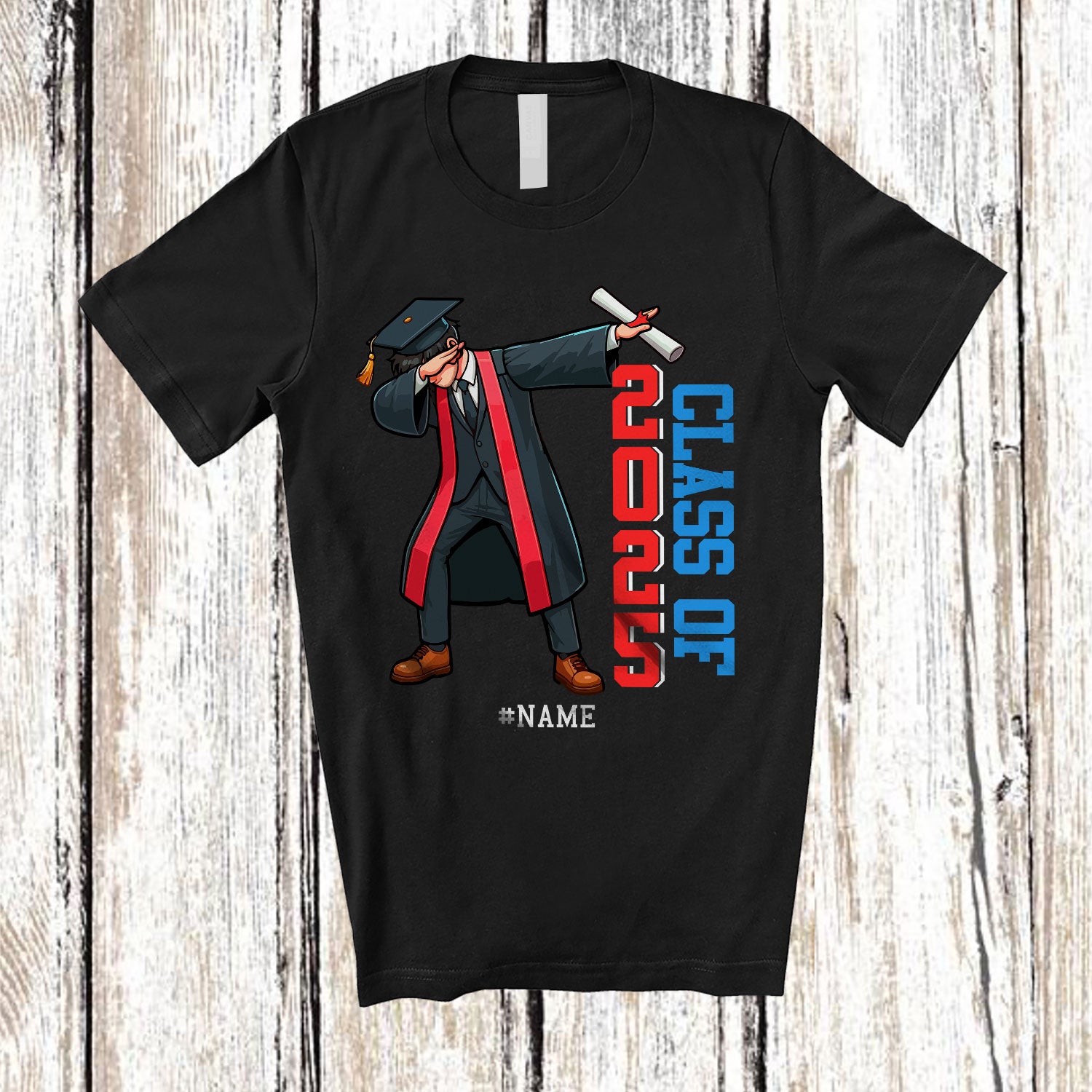 Personalized Class Of 2025; Joyful Graduation Seniors Dabbing Boy; Custom Name Men Graduate T-Shirt