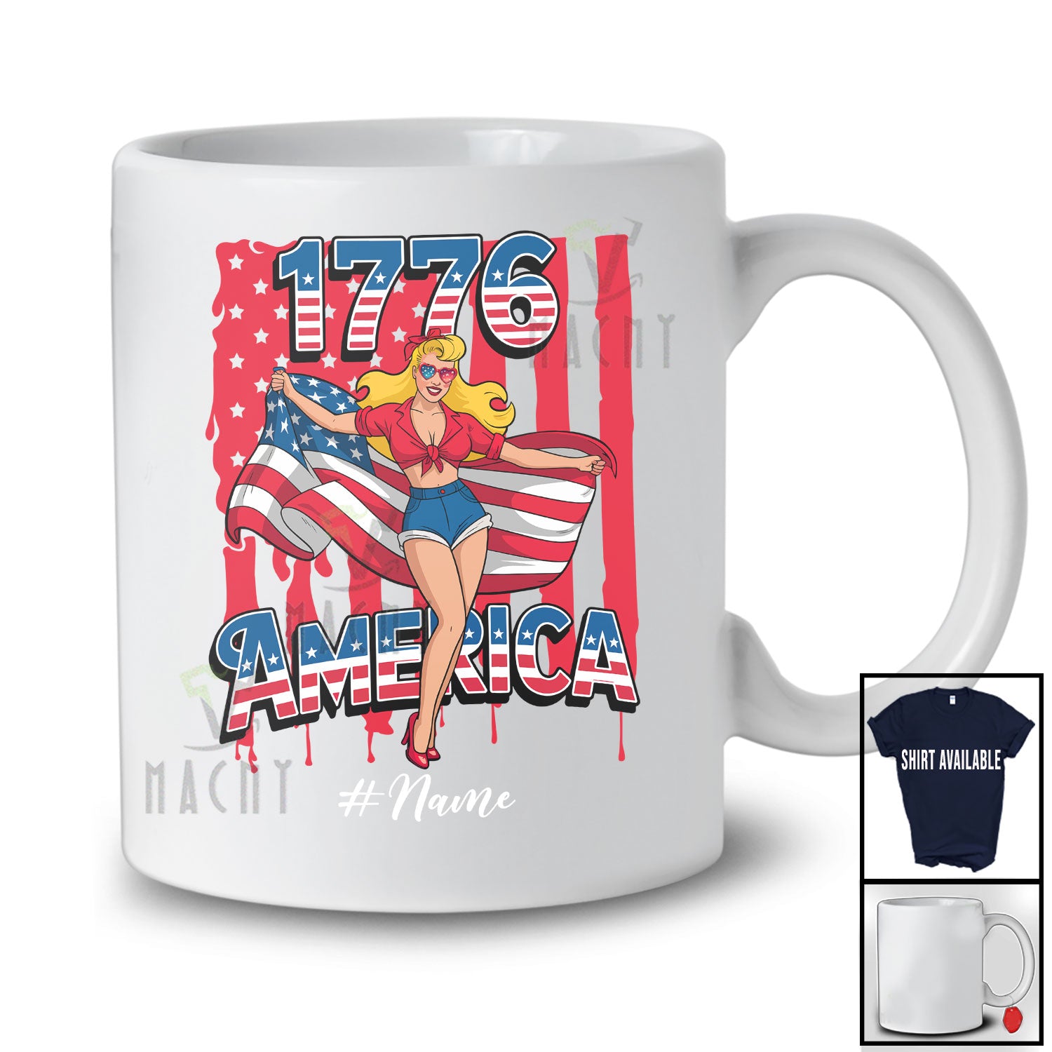 • Personalized Custom Name 1776 America; Awesome 4th of July American Flag Women Patriotic T-Shirt. This cotton t-shirt is a durable staple product with a classic fit. One of the most popular items, it has a relaxed style made for everyday and casual wear.