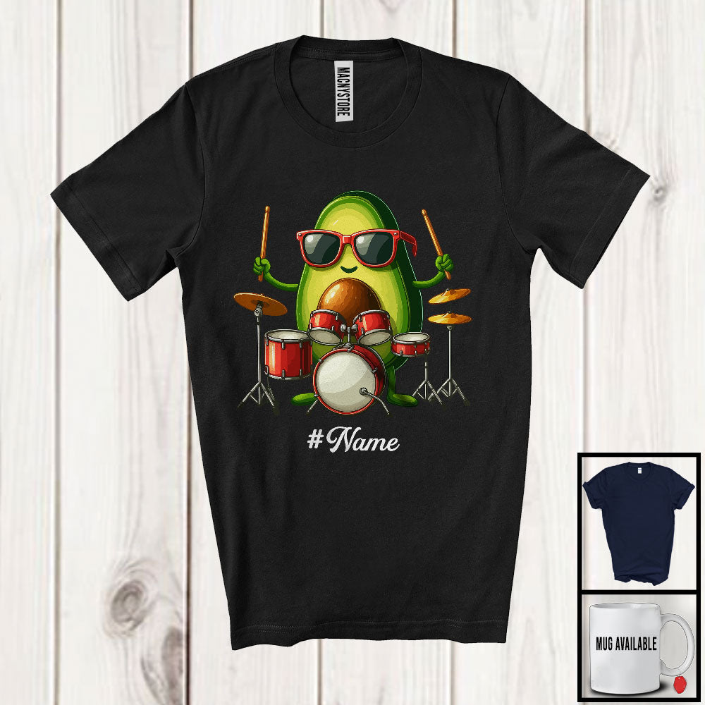 Personalized Custom Name Avocado Playing Drum. Lovely Fruit Vegan Drum Musical Instrument T-Shirt