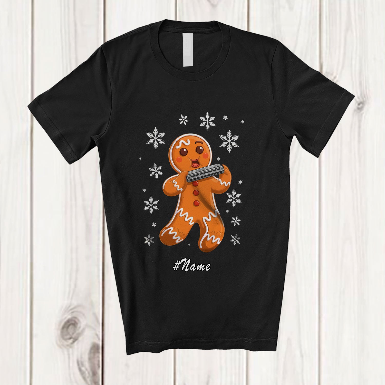 Personalized Custom Name Gingerbread Play Harmonica; Joyful Christmas Musical Instrument Players T-Shirt