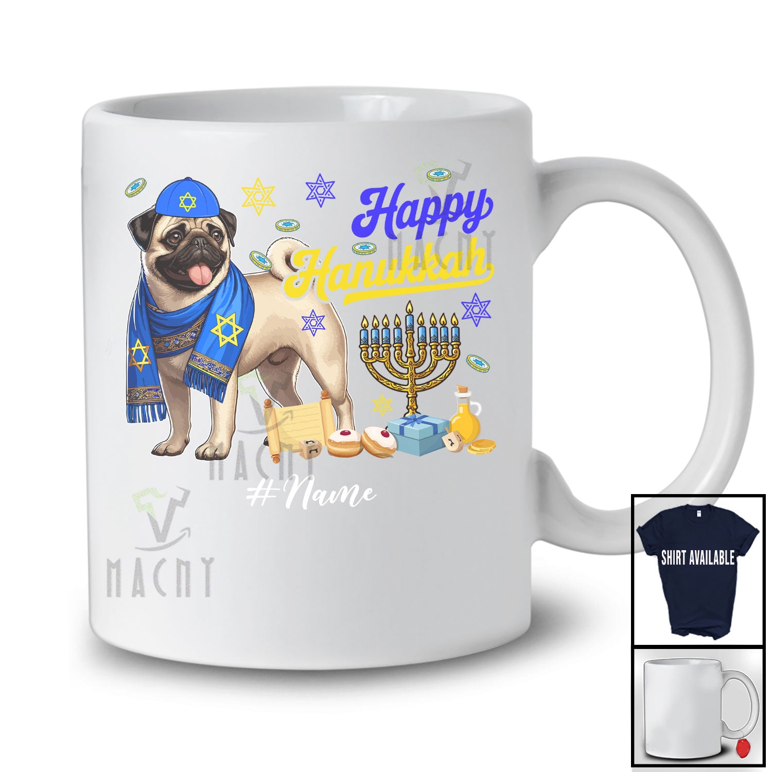 Life is too short to live without the Personalized Custom Name Happy Hanukkah; Amusing Chanukah Pug With Menorah Animal T-Shirt. Be happy. Be Content. Be Satisfied.