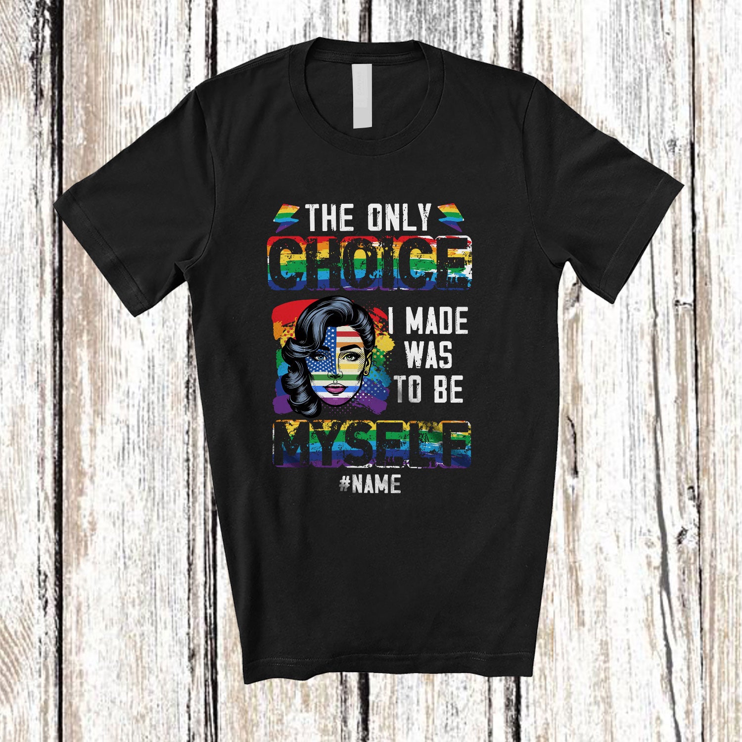 Personalized Custom Name Only Choice I Made; Proud LGBTQ American Women Face; Gay Rainbow T-Shirt