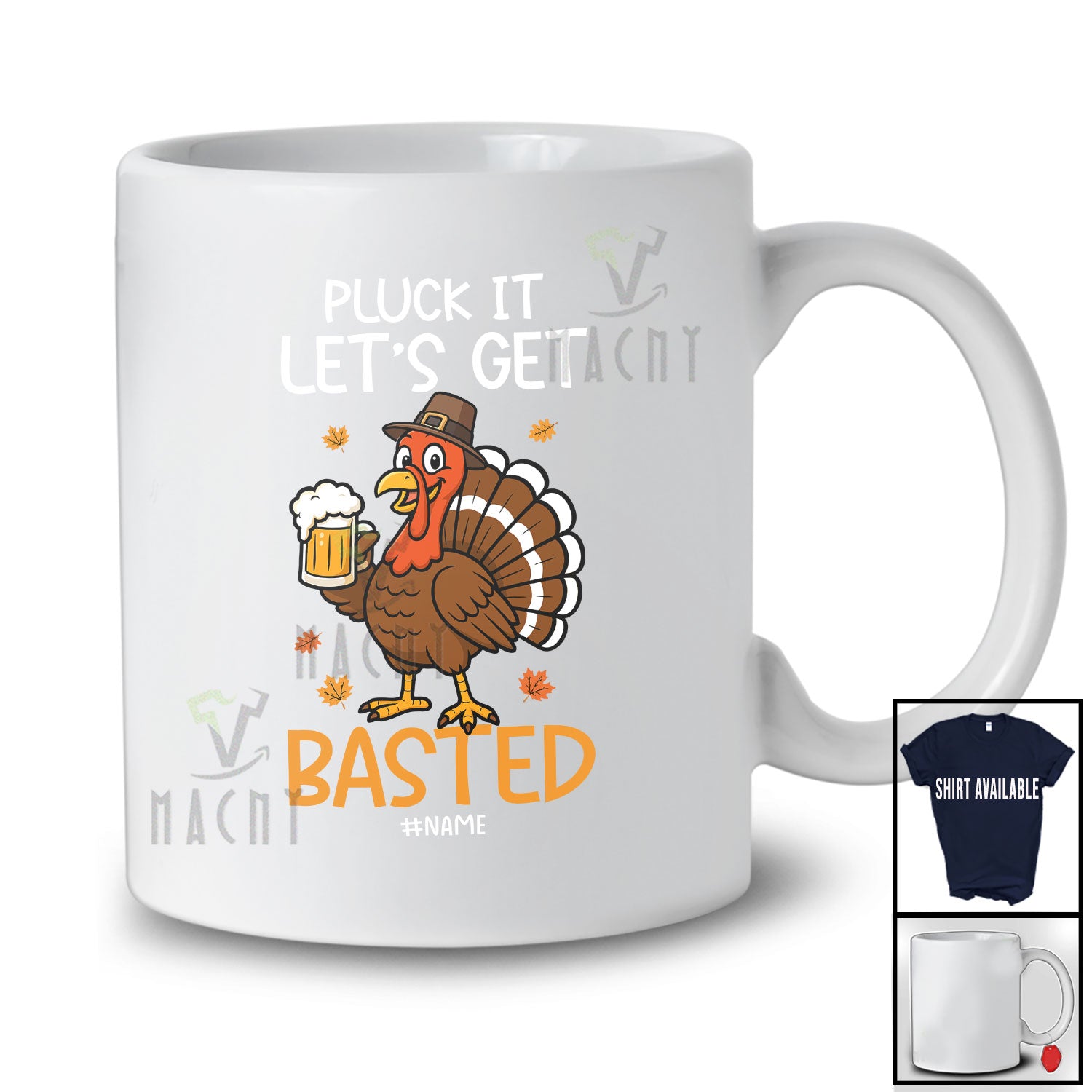 The Personalized Custom Name Pluck Basted; Amusing Thanksgiving Turkey Beer Drinking Men; Family T-Shirt destined to impress, and priced at only $12.95, for a limited time.