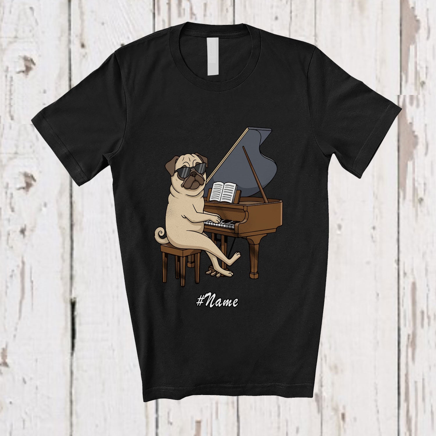 new MacnyStore - Personalized Custom Name Pug Playing Piano; Humorous Musician Musical Instruments T-Shirt – Macnystore