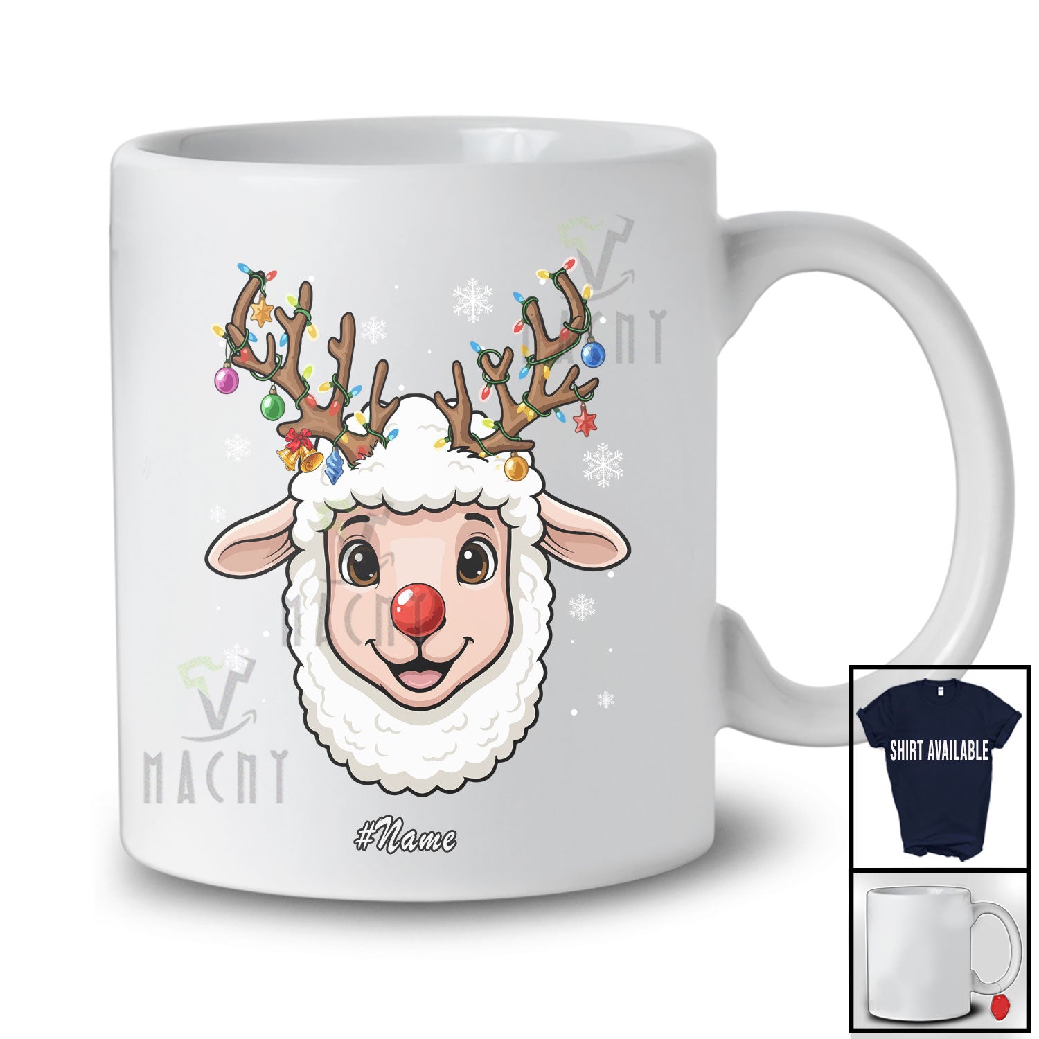 new MacnyStore - Personalized Custom Name Reindeer Sheep Face; Lovely Christmas Ornaments Lights Farmer T-Shirt – Macnystore