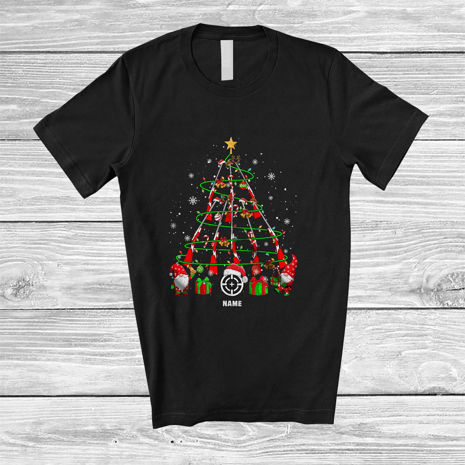 Personalized Custom Name Santa Hunting Equipment Christmas Tree; Joyful X-mas Lights Family T-Shirt