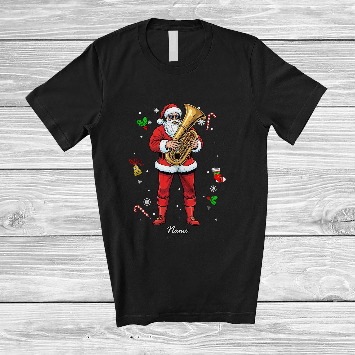 Personalized Custom Name Santa Playing Tuba Player; Amazing Christmas Musical Instrument T-Shirt