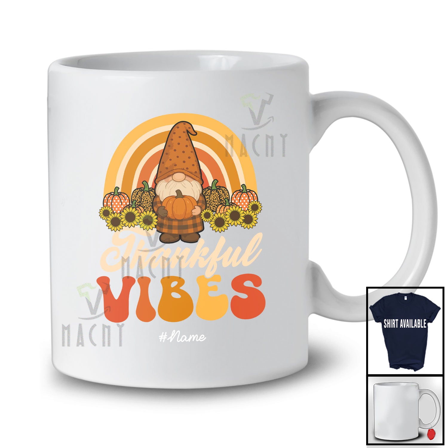Personalized Custom Name Thankful Vibes; Lovely Thanksgiving Gnome Rainbow; Women Family T-Shirt. This cotton t-shirt is a durable staple product with a classic fit. One of the most popular items, it has a relaxed style made for everyday and casual wear.