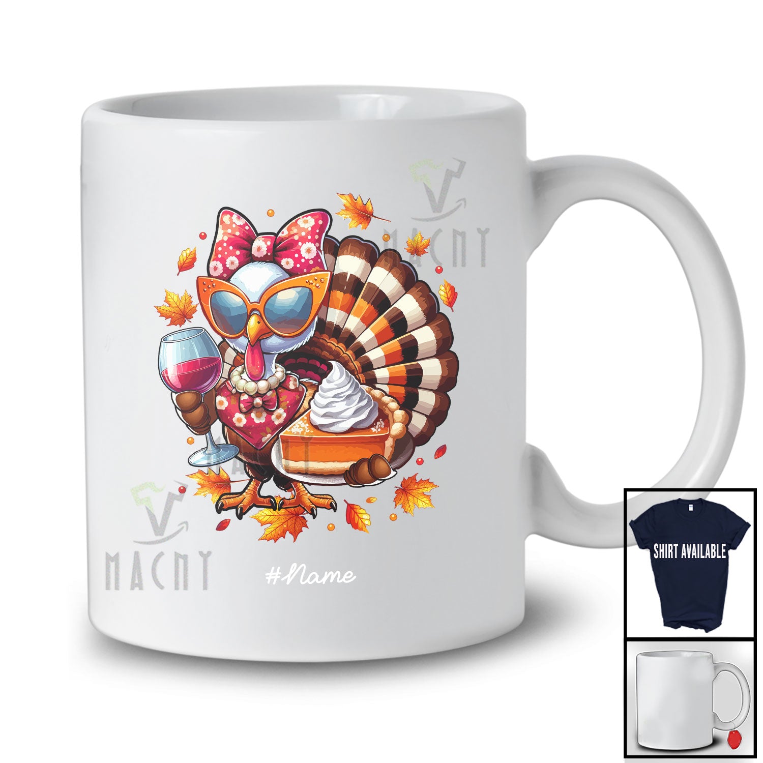 Personalized Custom Name Turkey Drinking Wine; Happy Thanksgiving Girl Women Turkey Bow Tie T-Shirt. This cotton t-shirt is a durable staple product with a classic fit. One of the most popular items, it has a relaxed style made for everyday and casual wear.