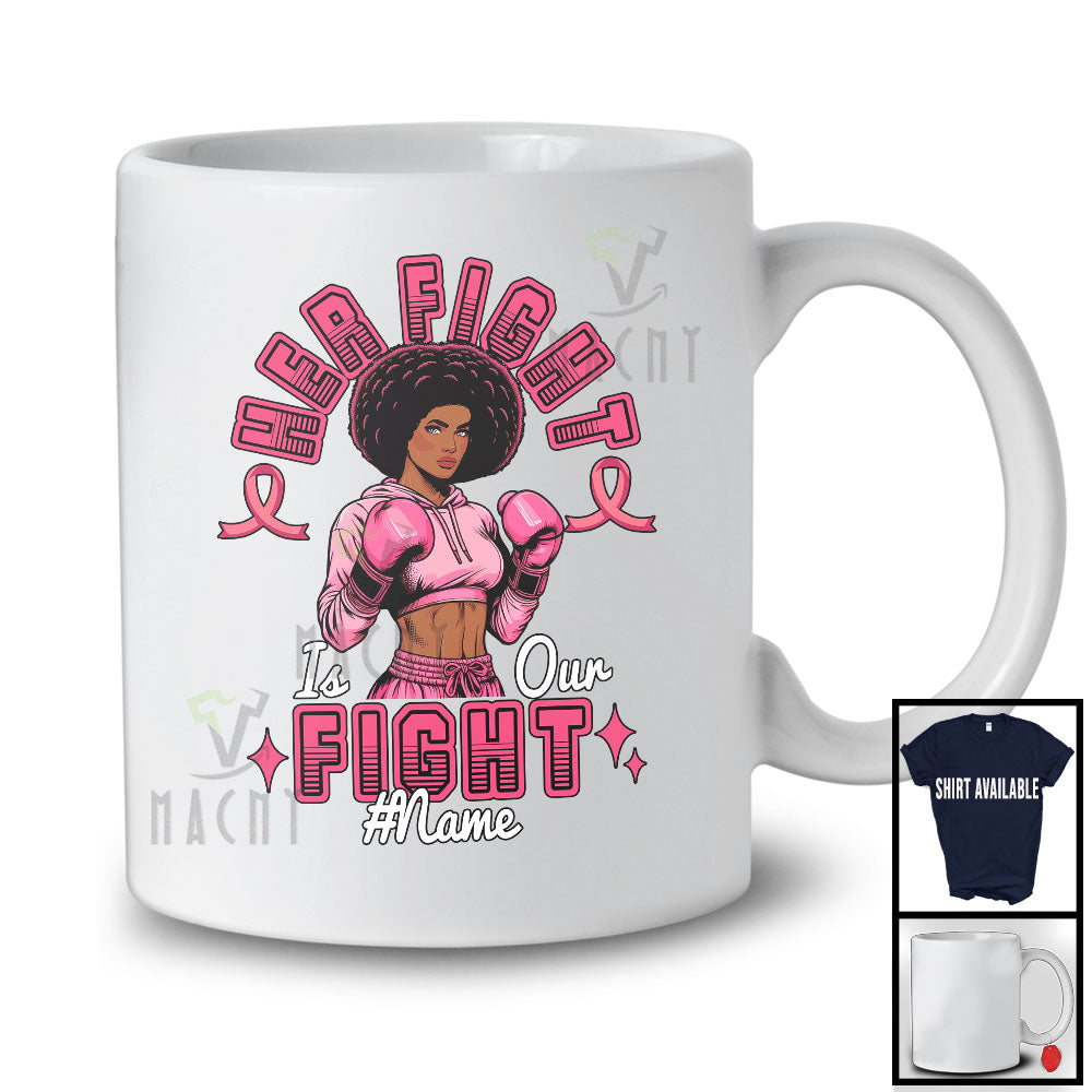 Personalized Her Fight Is Our Fight; Lovely Breast Cancer Custom Name Afro Women; Warrior Proud T-Shirt. This cotton t-shirt is a durable staple product with a classic fit. One of the most popular items, it has a relaxed style made for everyday and casual wear.