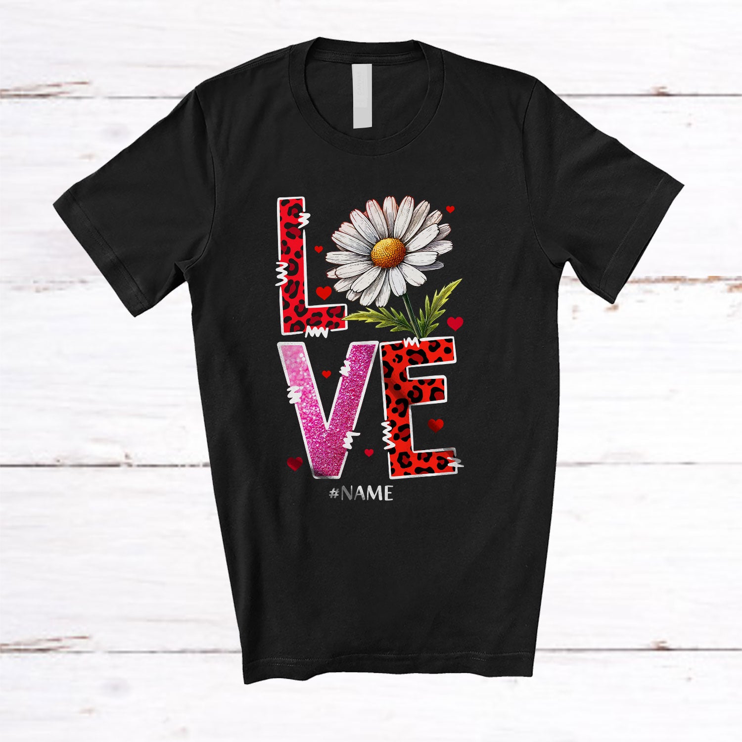 This Personalized LOVE; Amazing Valentine's Day Daisy Leopard Hearts; Custom Name Women Single T-Shirt is great idea gift for your family, friends in this birthday, christmas, mother's day, father's day, patrick's day or any holiday.