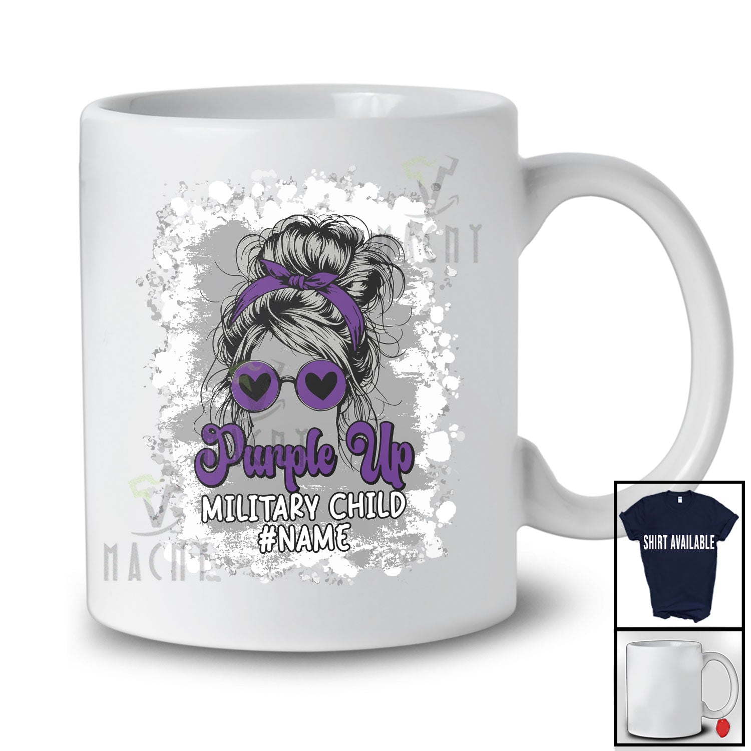 Personalized Purple Up Military Child; Lovely Messy Bun Hair Women; Custom Name Patriotic T-Shirt. This cotton t-shirt is a durable staple product with a classic fit. One of the most popular items, it has a relaxed style made for everyday and casual wear.