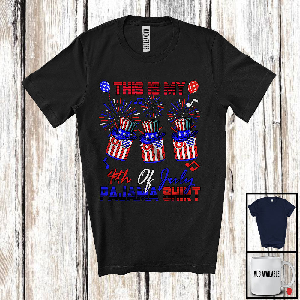 This Is My 4th Of July Pajama Shirt, Proud American Flag Drum, Musical Instruments Patriotic T-Shirt